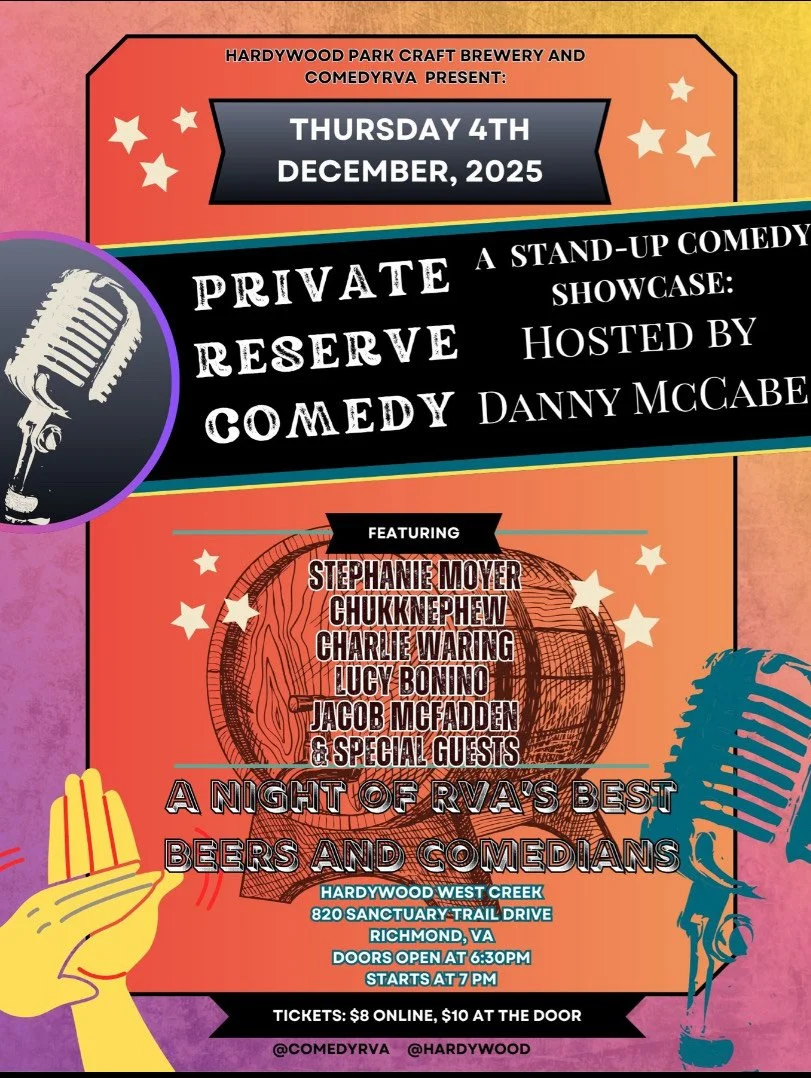 A new and exciting monthly stand-up comedy show in Hardywood West Creek's new private venue space “The Stave Cave” on Thursday December 4th at 7PM.